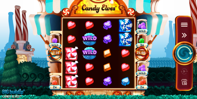 Crazy Tooth heeft ook de Candy Elves voorzien van hun fijne Big BuildUp feature. In het basisspel kunnen zogeheten Build-Up-symbolen landen op rol 1 en 4. Deze worden vervolgens opgeslagen in de glazen potten aan weerskanten van het speelveld waar ze vallen. Het spel omvat onder meer snoepgoed (Multiplier) Wilds en geldprijzen als Build-Up-symbolen. De blauwe geldprijzen hebben een waarde van 7,50 tot 100 waar rode geldprijzen een waarde hebben die ligt tussen de 25 en 500.