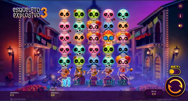 Esqueleto Explosivo 3 is het derde deel van de Esqueleto Explosivo-serie van game provider Thunderkick. Net als in de eerdere spellen vieren zingende skeletten Day of the Dead. Deze keer staan er extra veel doodskoppen op je speelveld, want het veld is uitgebreid naar een opmaak van 5x5 groot. Bovendien zijn de winlijnen ingeruild voor cluster pays en heeft de explosivo wild gezelschap gekregen van een normale wild. Zo voelt Esqueleto Explosivo 3 vertrouwd, maar toch compleet nieuw aan.
