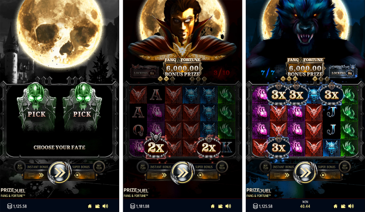 Crazy Tooth Studio heeft de Fang & Fortune gokkast voorzien van het Prize Duel™-mechanisme. Boven de rollen zijn twee geldwaarden zichtbaar. Wanneer op een willekeurig moment in het basisspel de strijd tussen de vampier en de weerwolf losbarst, krijg je de betreffende geldprijs van de winnaar.