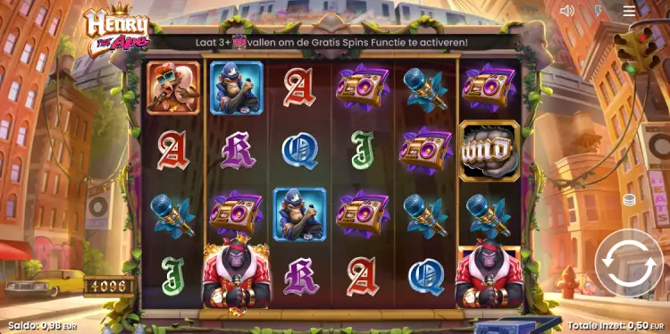 Henry the Ape is een verrassende videoslot van game provider Push Gaming. In het spel draait alles om Henry de aap. Deze aap is namelijk het super hoog uitbetalende symbool van het spel. Niet alleen betaalt Henry bij twee stuks al uit, ook zijn er verschillende speciale features aan hem verbonden. Daarnaast helpen multiplier wilds en een free spins bonusronde met progressieve functie je in dit spel aan maximaal 10.000x je inleg.