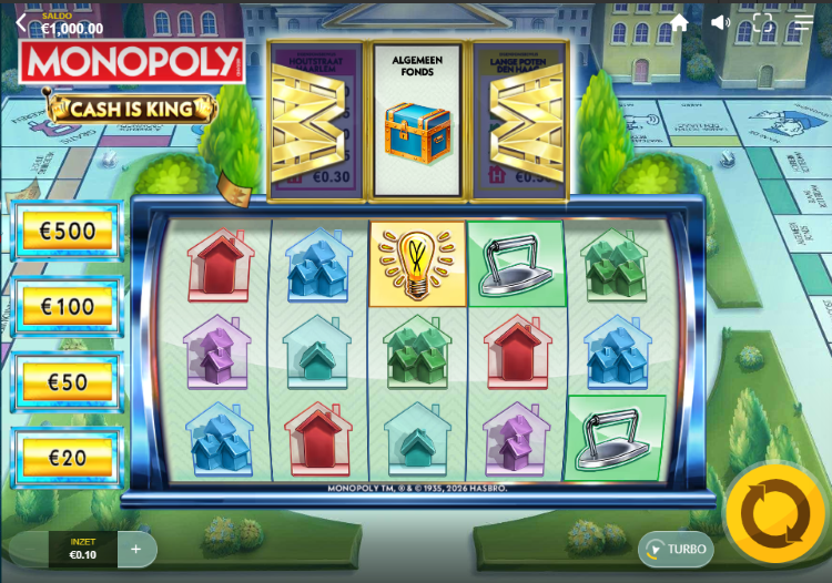 In 2025 kondigde Evolution groot nieuws aan:de iGaming gigant heeft een exclusief licentiepartnerschap afgesloten met Hasbro voor online live casino- en gokkastspellen van diverse Hasbro-spellen. Waaronder ook het welbekende vastgoedspelletje Monopoly. De 5x3 video slot Monopoly Cash is King van Red Tiger (onderdeel van Evolution) is een van de eerste titels in deze reeks, naast onder meer Monopoly Money Line (NetEnt). In Monopoly Cash is King komen uiteraard de bekende Kans-en Algemeen Fonds kaarten en vastgoed aan bod.
